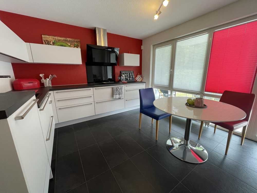 Die moderne Einbauküche ist mit hochwertigen Geräten ausgestattet und ist im Mietpreis mit inbegriffen. Die Küche bildet zusammen mit dem angrenzenden Esszimmer das Herzstück des Wohnens.