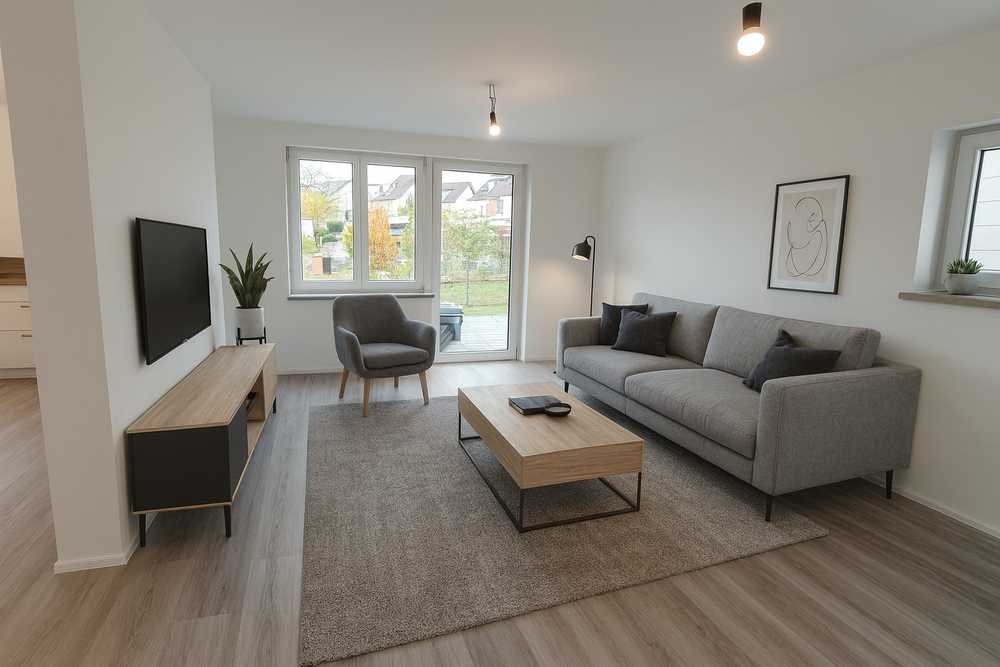 Die helle und modern ausgestattete 2,5-Zimmer-Wohnung befindet sich im 1. Obergeschoss eines umfassend sanierten Wohnhauses und überzeugt durch eine offen gestaltete Wohnfläche von ca. 66 m². Besonders hervorzuheben ist die außergewöhnlich große Dachterrasse mit rund 50 m², die einen wunderbaren Blick ins Grüne bietet und zum Entspannen oder geselligen Beisammensein einlädt. Die Wohnung ist ab dem 01.10.2025 bezugsfertig und eignet sich ideal für Singles und Paare (nur 1 Schlafzimmer), die Wert auf ein hochwertiges Wohnambiente und nachhaltige Energiekonzepte legen.