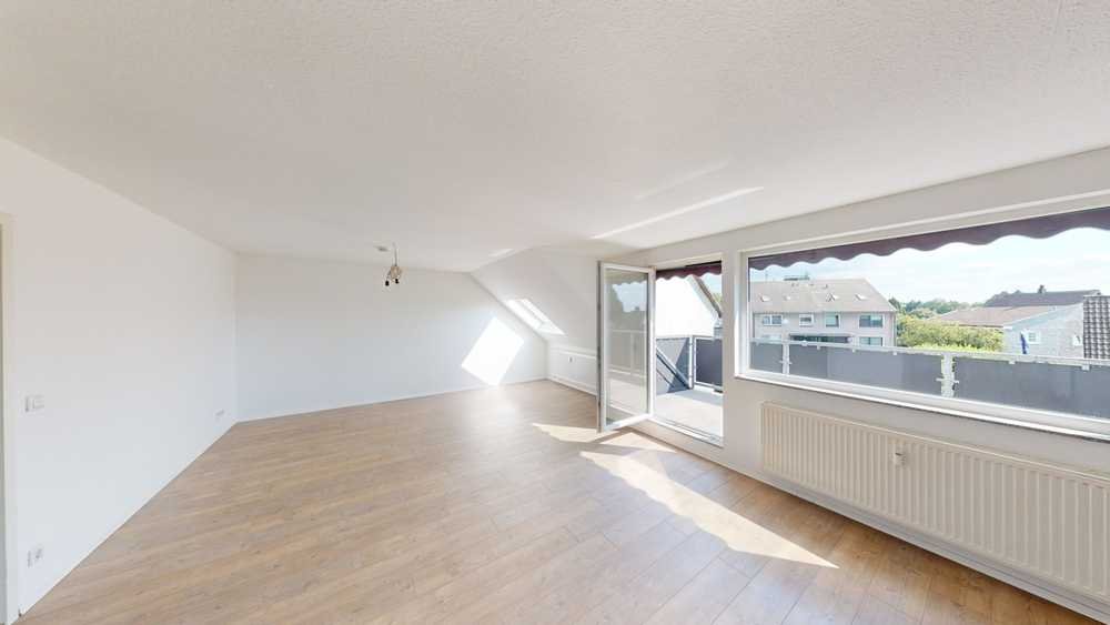 Einziehen und Wohlfühlen! Diese frisch sanierte Dachgeschosswohnung befindet sich in einer ruhigen Wohngegend von Wuppertal-Cronenberg. In einem 6-Parteienhaus gelegen, überzeugt diese moderne Mietwohnung mit einem offenen Wohnkonzept, das eine einladende Atmosphäre schafft. Beim Betreten der Wohnung gelangen Sie direkt in das großzügige Wohnzimmer.