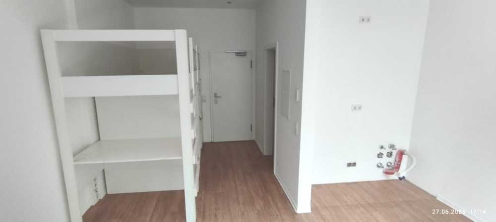 Die Wohnung besteht aus einem geräumigen Zimmer, das Platz für Wohn- und Schlafbereich bietet. Große Fenster sorgen für ausreichend Licht und schaffen eine freundliche Atmosphäre.