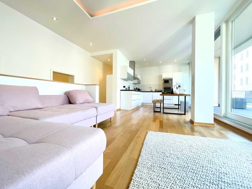 Dieser gehobene Lebensstil setzt sich in der Wohnung fort. Mit Parkettboden und einem ansprechenden Lichtkonzept ausgestattet, wird hier Wohlfühlen erlebt. Von dem Küchenbereich oder von der Couch hat man immer einen tollen Blick auf die Terrasse.