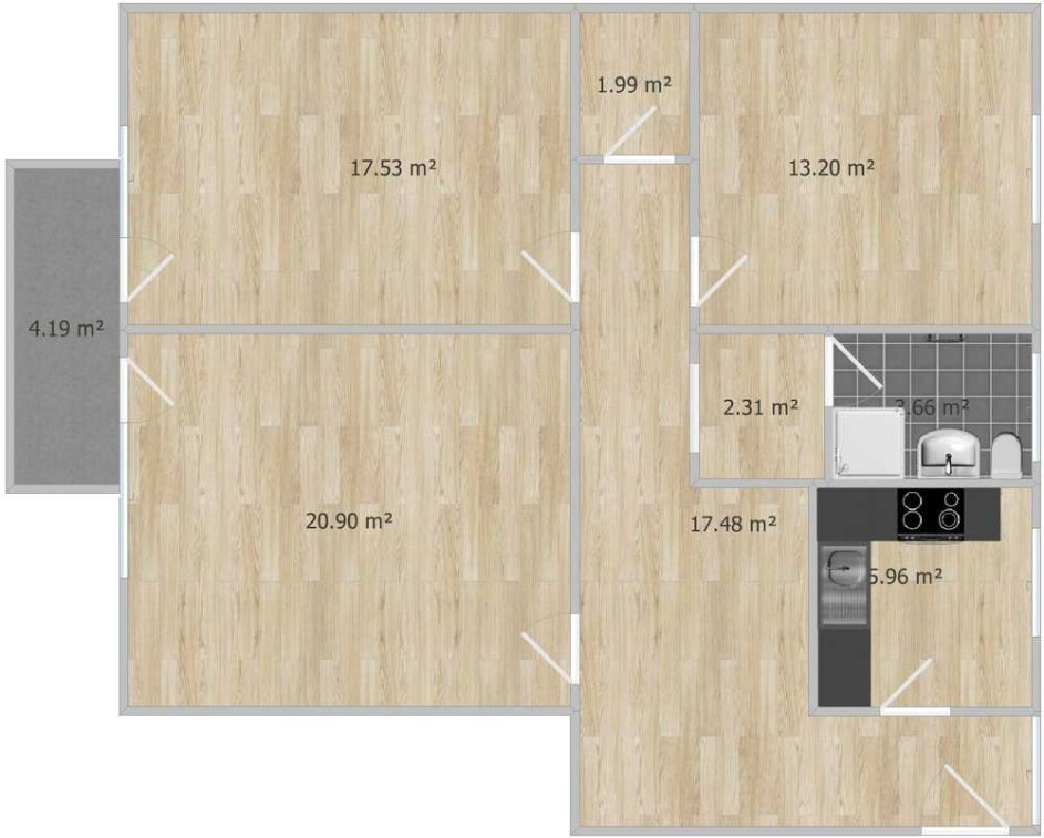 Für eine renovierte Wohnung mit drei großzügig geschnittenen Zimmern werden neue Mieter gesucht. Der Zugang zur Wohnung erfolgt über eine eigene Loggia. Zusätzlich gibt es einen Balkon, der sowohl vom Schlafzimmer als auch vom Wohnzimmer betreten werden kann. Vor dem Hauseingang stehen Stellplätze für die Bewohner zur Verfügung. Zu der Wohnung gehört auch ein großer Kellerraum.