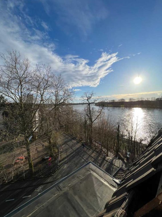 Die helle und ruhige Wohnung in Porz liegt in direkter Rheinlage.