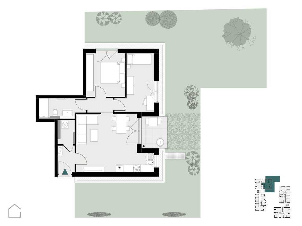 Viel Tageslicht, direkter Zugang zur Natur, Funktionalität und Großzügigkeit zeichnen den Grundriss aus. Die Architektur überzeugt mit einer zeitgemäßen Idee modernen Wohnens, stilsicher angepasst an die Charakteristik der Umgebung.