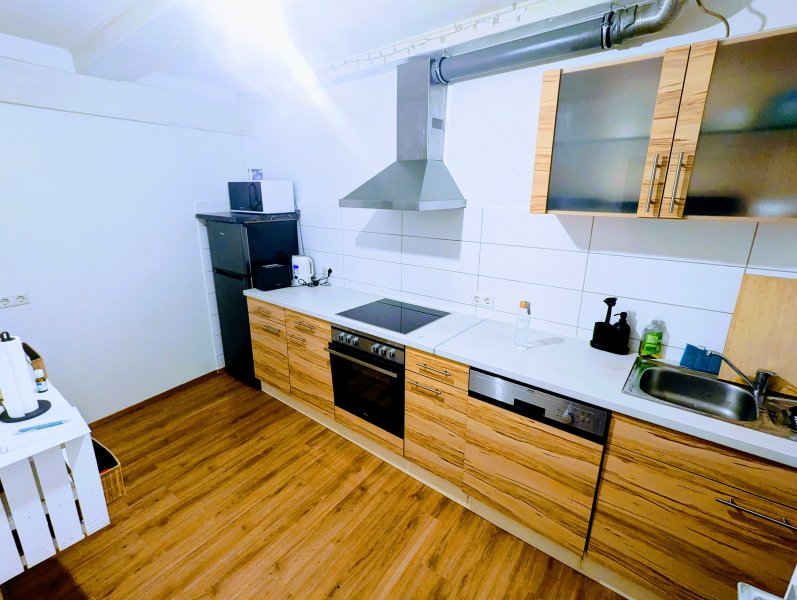 Die Küche ist bereits vollständig ausgestattet und enthält alles, was man zum sofortigen Einzug benötigt: Herd, Spülmaschine, Kühlschrank und Backofen.
