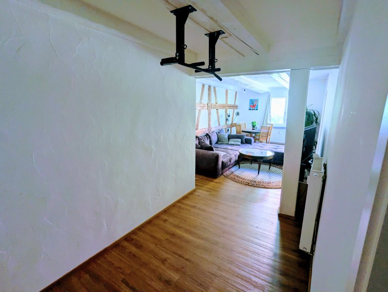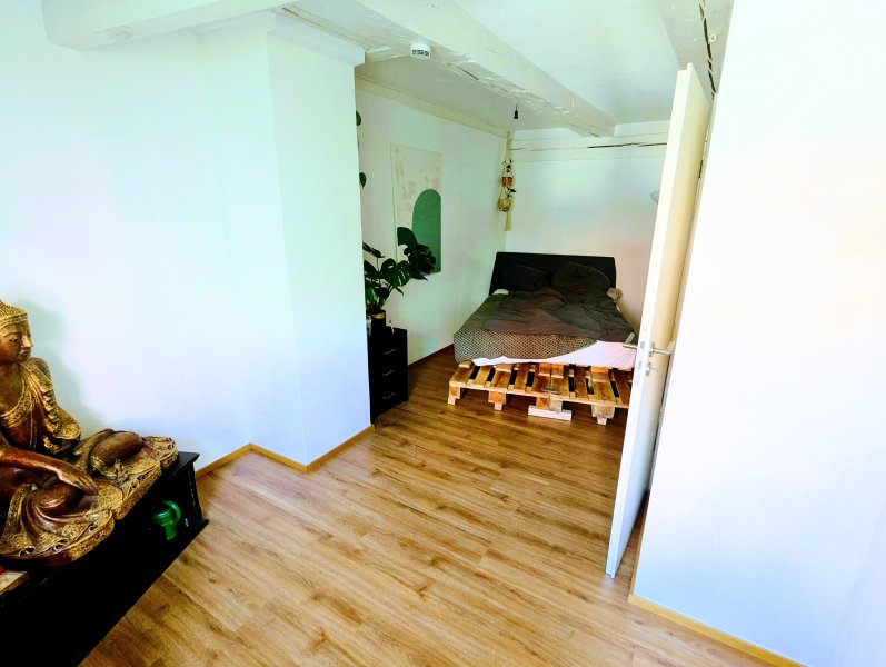 Die Wohnung verfügt über einen großen Raum, sowie einen kleineren Raum. Zusätzlich gibt es einen separaten Wohnbereich. Außerdem bietet die Wohnung ein getrenntes Bad und WC.