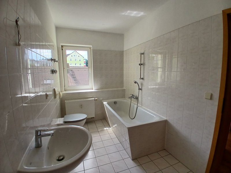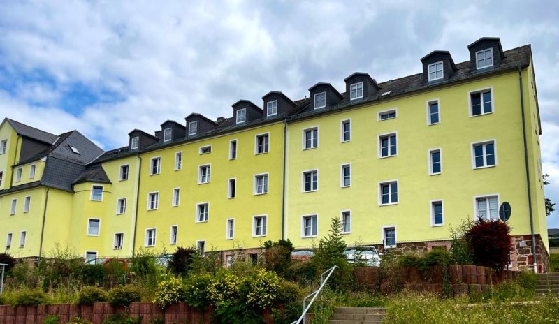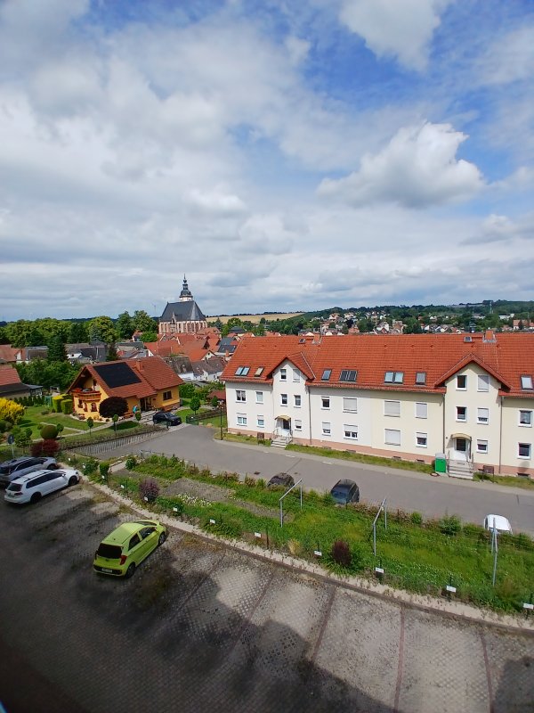 Die Wohnung befindet sich in einem Mehrfamilienhaus mit Blick über Penig