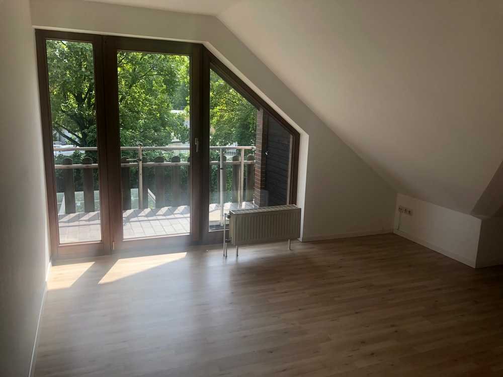 3-Zimmer-Wohnung im Obergeschoss eines Zwei-Familien-Hauses, ca. 98 Quadratmeter Grundfläche. Große Küche mit kompletter Einbauküche und kleiner Abstellkammer (Außenjalousien), großer Flur mit viel Platz für Stauraum. Badezimmer mit Dusche, Badewanne, zwei Waschbecken und WC. Separates kleines Gäste-WC. Zwei große Wohn- oder Schlafräume mit Schrägen, die über einen langen, sonnigen Südbalkon verbunden sind. Kleineres Zimmer ohne Schrägen mit Außenjalousien. Dachboden als Stauraum (nach Absprache) nutzbar. Letzte große Renovierung 2016, neues, helles Laminat in den Wohnräumen, ansonsten Fliesen. Im Keller befindet sich eine Waschküche, dort ist es möglich eine Waschmaschine und einen Trockner aufzustellen.