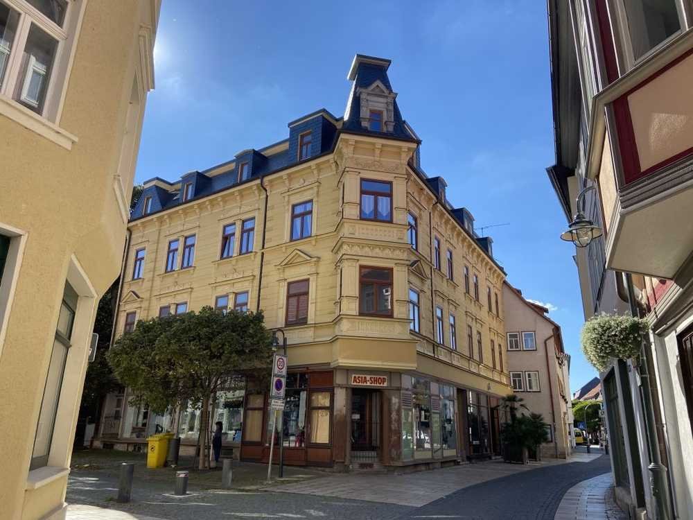 Die Schmuckfassade spricht für sich. Das denkmalgeschützte Mehrfamilienhaus steht am Anfang der Fußgängerzone, straßenprägend eines der repräsentativsten Gebäude von Bad Langensalza.