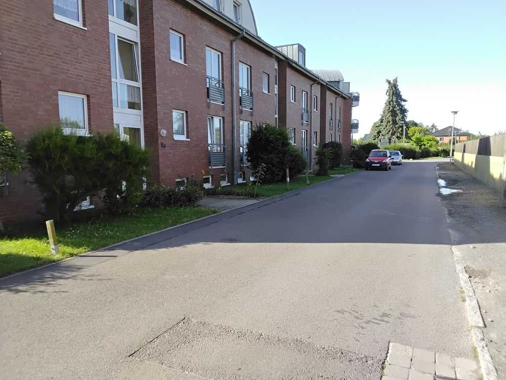 Das Grundstück ist weitläufig angelegt mit Bänken, viel Rasen und Obstbäumen. Die Umgebung zeichnet sich durch eine ruhige und angenehme Wohnatmosphäre aus, die dennoch eine gute Anbindung an Freizeitmöglichkeiten bietet.