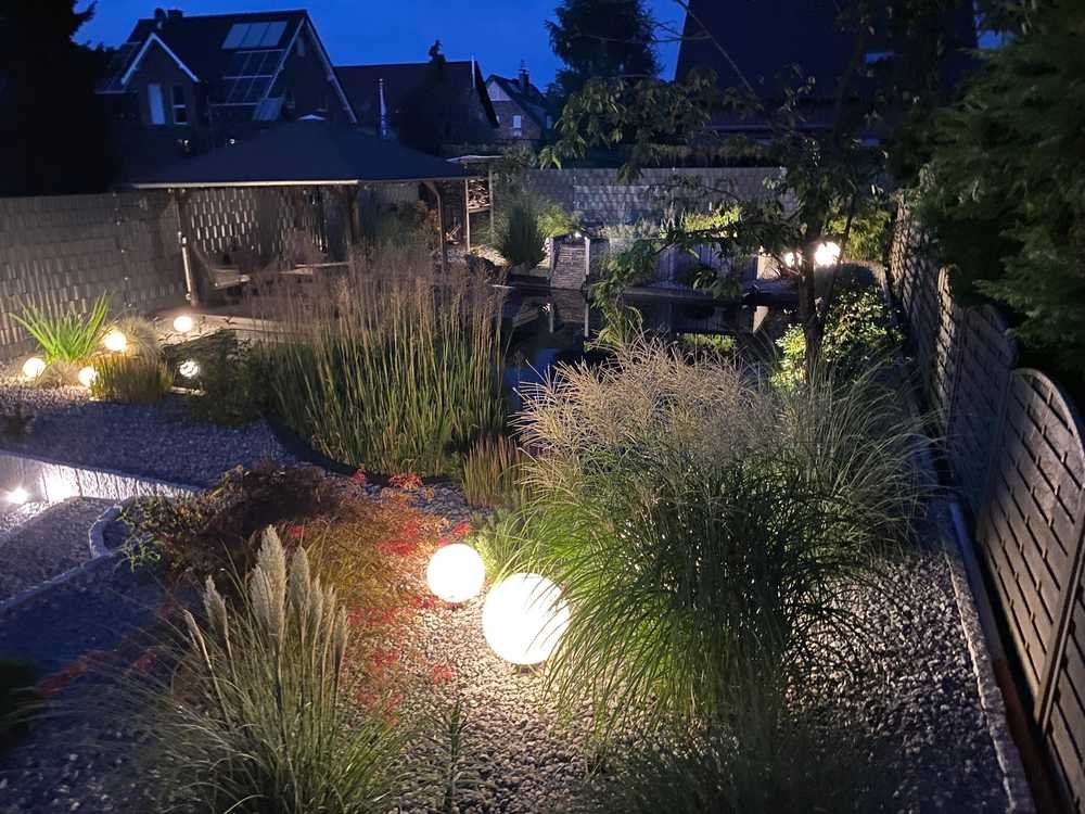 Eine moderne und große Einbauküche mit Kochinsel, freihängender Dunstabzugshaube, echtem Cottoboden, großem amerikanischem Kühlschrank, Herd, und Ceranfeld ist vorhanden und kann kostenfrei genutzt werden und befindet sich ebenfalls im Erdgeschoss. Im Anbau befindet sich das große Wohnzimmer, welches nach oben geöffnet wurde und den Blick in den Himmel freigibt mit Zugang zur perfekt gestalteten glasumrandeten Terrasse mit Blick in den rundum gepflegten Garten mit Schwimm- oder Fischteich, auf der sich so manche Sommernächte verbringen lassen. Im Obergeschoss liegt das extravagante Hauptbad mit bodentiefer Dusche und Grohe Raindance Dusche sowie einer Whirlpoolwanne sowie weiterer exklusiver Badausstattungen, 2 Kinder/Schlaf/Arbeits/Gästezimmer sowie ein Ankleideraum und der Flur befinden sich ebenfalls auf dieser Ebene.