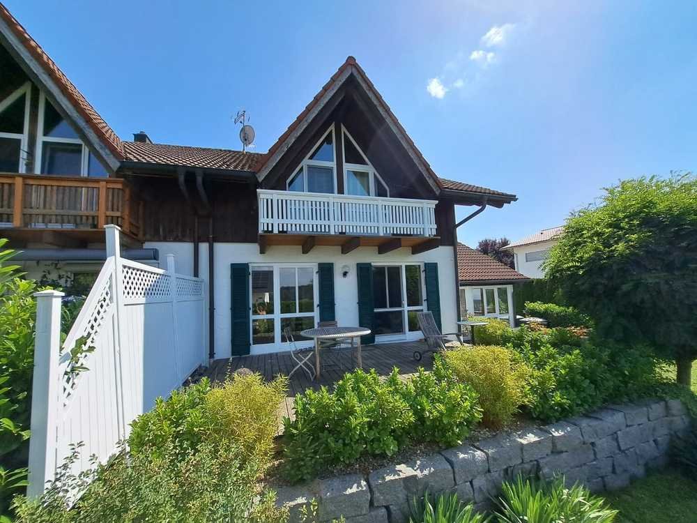 Die außerordentlich liebevoll gestaltete Doppelhaushälfte ist umgeben von einer professionell gestalteten Gartenanlage, welche keine Wünsche offenlässt. Vor dem Haus auf der Ostseite lädt die Morgensonne zum Frühstück. Die Terrassen im Westen erstrecken sich über zwei Ebenen. Die großzügige über dem Garten gelegene Holzterrasse bietet jede Menge Platz zum Sonnenbaden oder für Sitzgelegenheiten. Eine Kugelakazie spendet Schatten für den Nachmittagskaffee, wohingegen sich der tiefergelegene Loungebereich besonders gut zum Grillen und für lange entspannte Sommerabende eignet.