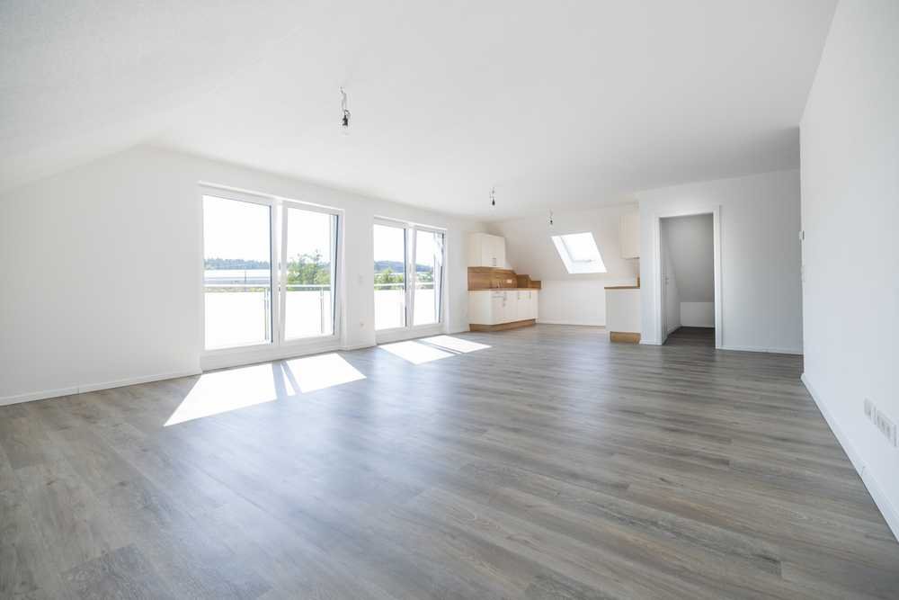 Das Herzstück der Wohnung bildet der weitläufige Wohn- und Essbereich mit integrierter, offener Küche. Dank großer Fensterflächen ist der Raum von natürlichem Licht durchflutet und bietet eine freundliche Wohnatmosphäre. Vom Wohnzimmer aus gelangen Sie direkt auf den großen Balkon. Hier genießen Sie nicht nur viel Platz für eine Sitzgruppe oder Pflanzen, sondern auch eine schöne Weitsicht, die den Balkon zu einem besonderen Rückzugsort macht – ideal für entspannte Stunden im Freien.