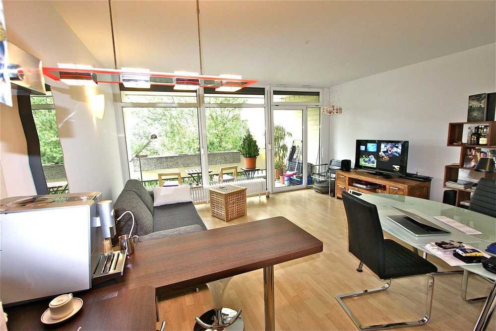 Die Fotos zeigen die Wohnung mit einer früheren Möblierung. Heute präsentiert sie sich mit der Einrichtung des aktuellen Mieters und wird ohne diese übergeben – ausgestattet bleibt sie mit allen fest eingebauten Highlights.