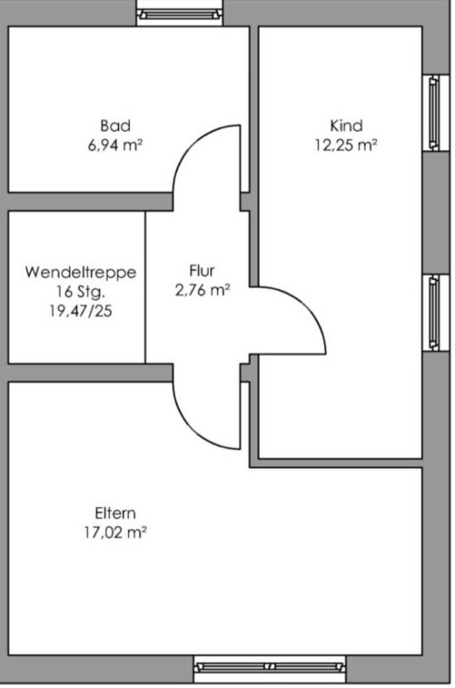 • Obergeschoss: Schlafzimmer, Kinder-/Gästezimmer, Bad, Flur