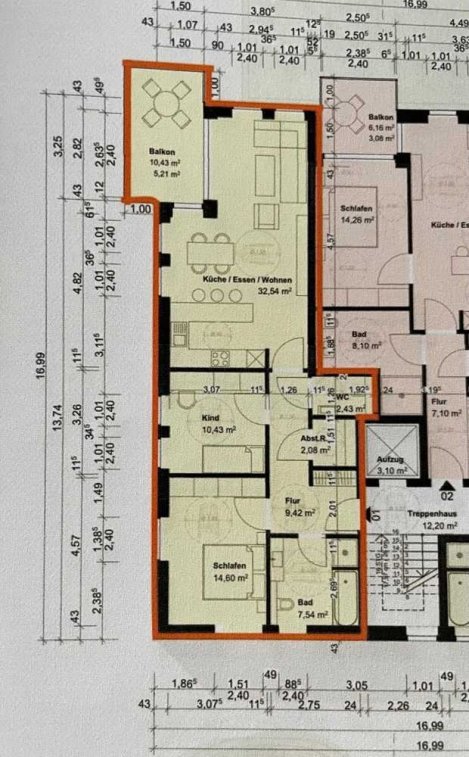 - Offener Wohn- und Essbereich mit Zugang zum Balkon