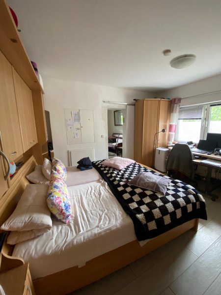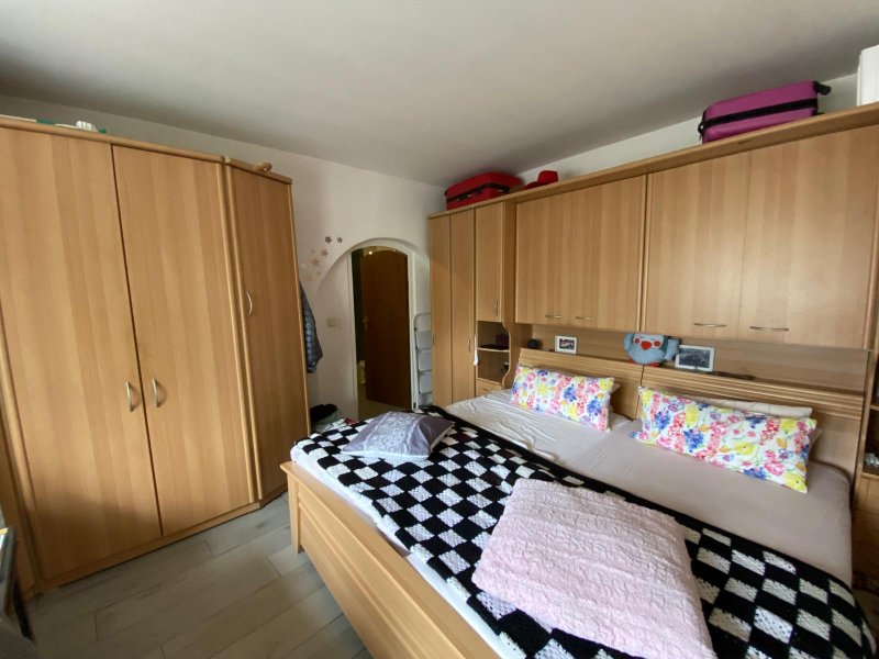 Vom Wohnzimmer aus kommt man durch eine Schiebetüre ins Schlafzimmer,. Das Schlafzimmer ist ausgestattet mit einem Doppelbett und Schränken, die für genügend Platz zur Unterbringung sorgen.