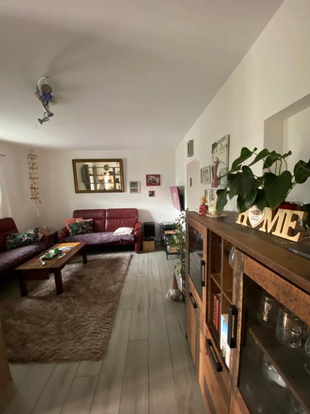 Die Wohnung liegt an der Strasse. Sie befindet sich in einem 5-Familienhaus und verfügt über einen seperaten Eingang, den man über zwei Stufen betritt. Rechts gelangt man in die Küche, Die Küche ist ausgestattet mit einer Einbauküche mit Hänge- und Unterschränken, Einbauherd mit Backofen, Spülmaschine und Kühlschrank sowie ein Esstisch mit 4 Stühlen.