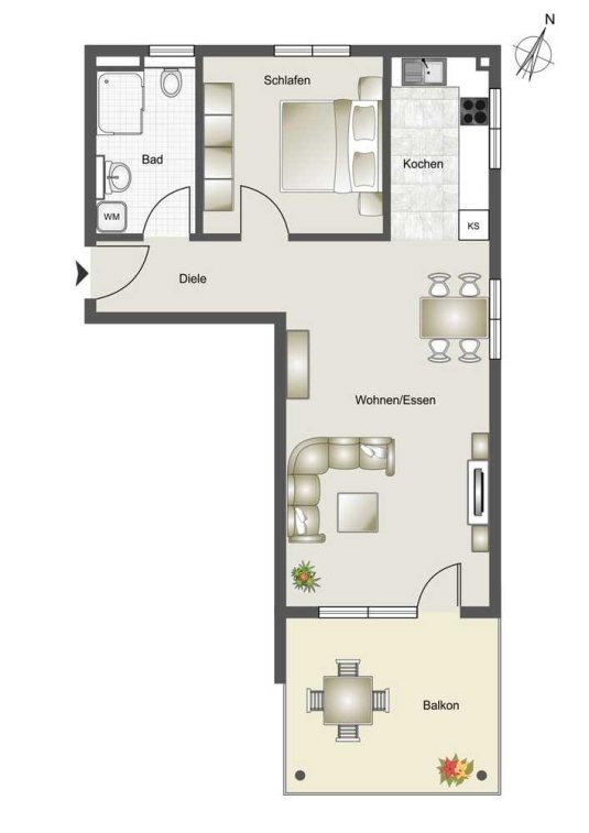 Auf dem am Wohnbereich angrenzenden Balkon können Sie jederzeit die frische Luft und die Sonne genießen.