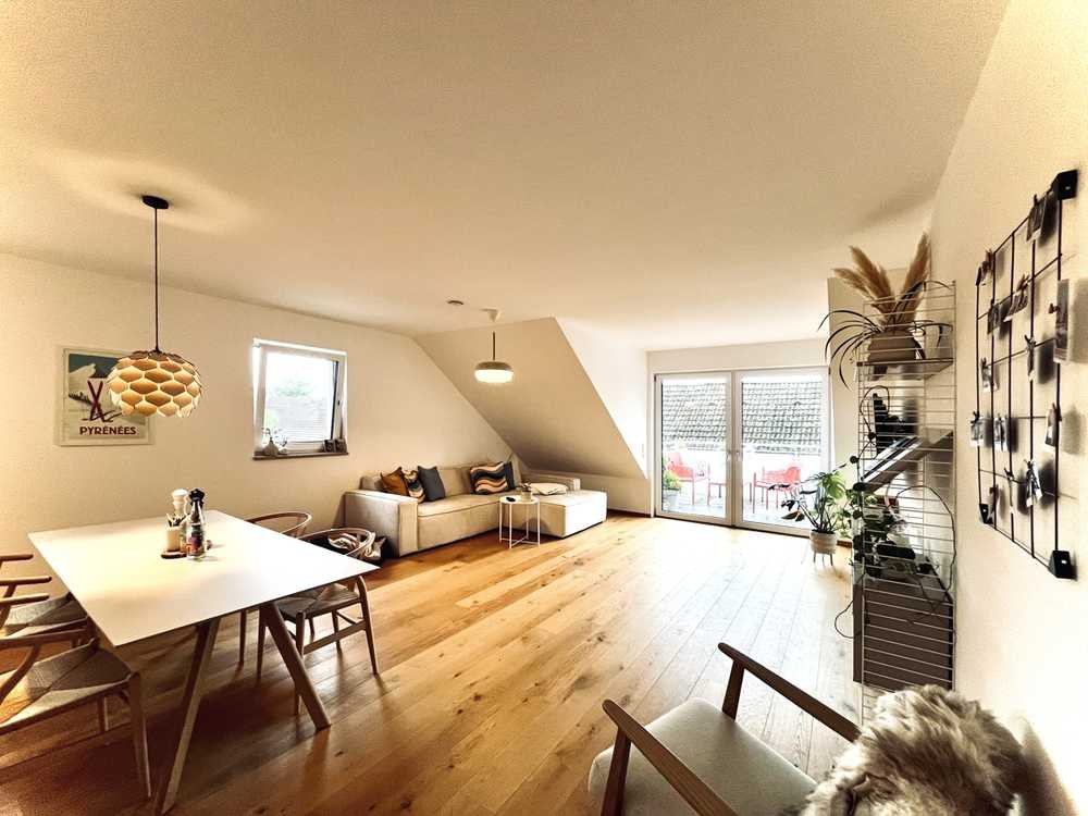 Entdecken Sie diese moderne Dachgeschosswohnung mit einer großzügigen Wohnfläche von 97m². Die 2023 erbaute Immobilie besticht durch ihre Energieeffizienzklasse A+ und bietet drei helle Zimmer und einen schönen großen Balkon mit elektrischer Markise.