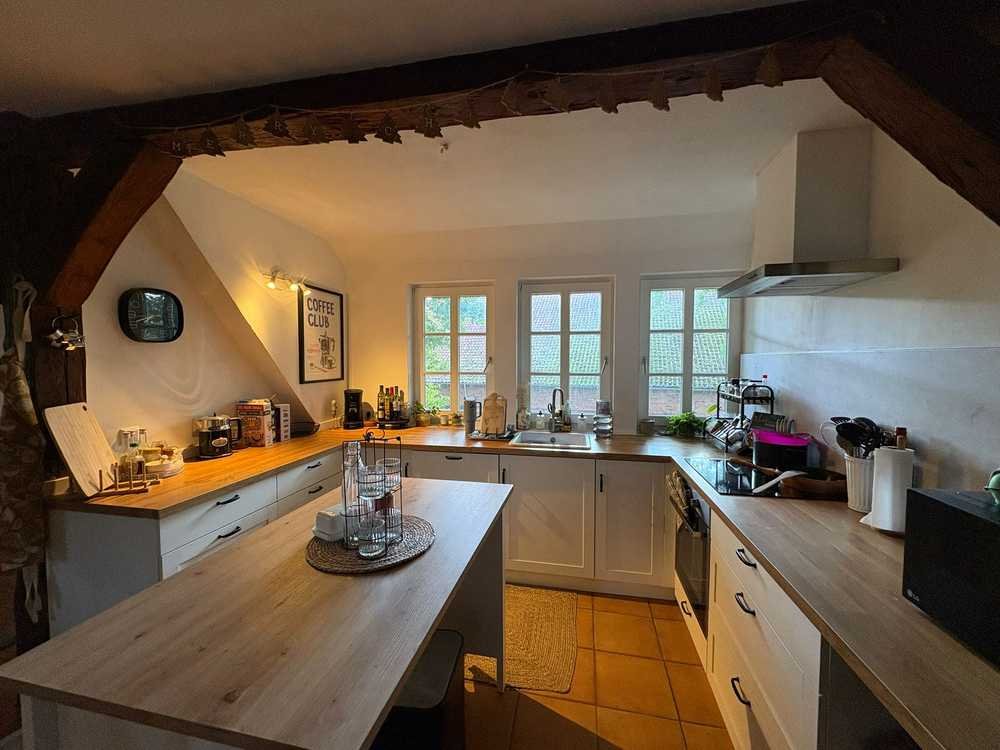 Das stilvolle Ambiente wird durch die sichtbaren Fachwerkelemente in der gesamten Wohnung geprägt – ein echtes Highlight für alle, die das Besondere suchen.