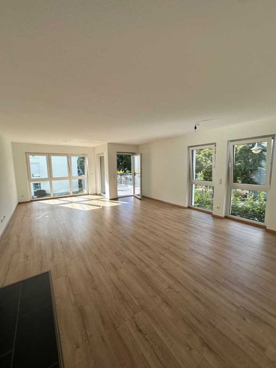 sonnigen und großzügigen Balkon. Eine moderne Einbauküche, zwei Badezimmer mit hochwertiger Ausstattung (Gästebad und großes Badezimmer) runden das Gesamtbild ab. Zur Wohnung gehören außerdem auch ein Kellerabteil und ein Stellplatz.