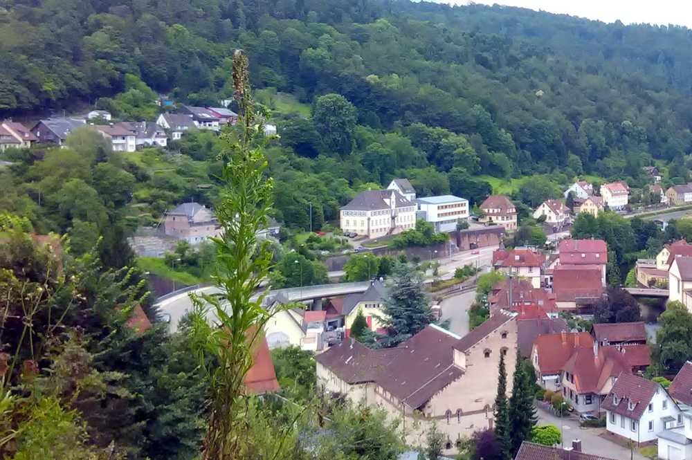 In Richtung Westen mit Blick Richtung Ruine Burg Straubenhardt. Kleine Pflanzecke. Zugänge von Wohnzimmer und Kinderzimmer aus.