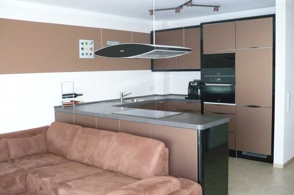 Der Wohn-, Ess- und Kochbereich sowie das Arbeitszimmer sind dank bodentiefer Fenster lichtdurchflutet. Die Loggia mit dunkelbraunen Bodendielen erreichen Sie sowohl vom Arbeitszimmer als auch vom Wohnzimmer aus. Das Badezimmer und separate WC sind in modernen Sandfarben gefliest. Im Bad befinden sich sowohl eine Badewanne als auch eine Dusche. Das Schlafzimmer-Fenster zeigt Richtung Osten. Im Flur ist Platz für eine großzügige Garderobe. Außerdem gehört ein ca. 6 m² großer Kellerraum sowie ein Tiefgaragen-Stellplatz (kein Duplex) zur Wohnung. Das Garagentor lässt sich mittels einer Funkfernbedienung öffnen.