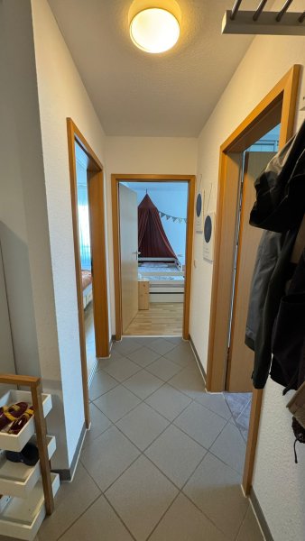 Der Flur der Wohnung bietet viel Platz für Garderobenmöbel.
