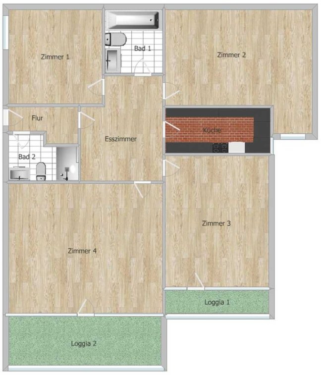 • 2 moderne Vollbäder - keine langen Wartezeiten beim Duschen!
