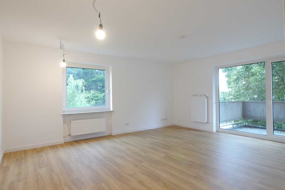 Das lichtdurchflutete Wohnzimmer bietet ausreichend Platz für eine gemütliche Einrichtung und bietet Zugang zu einem kleinen Balkon, der sich ideal für entspannte Stunden im Freien eignet.