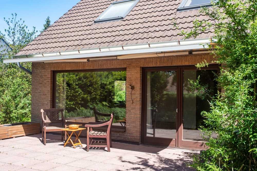 Das Dach ist mit Betonziegeln in der passenden Farbe gedeckt.