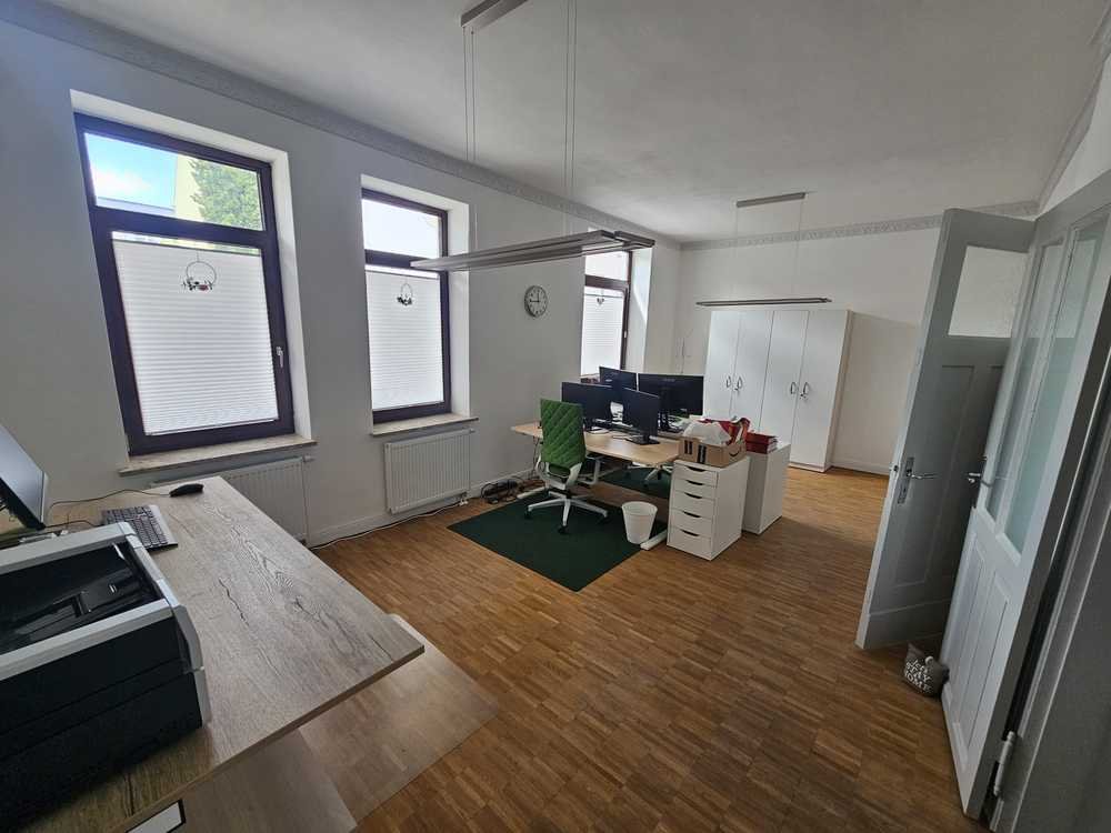 Derzeit ist die Wohnung als Büro genutzt. Bei Neuvermietung wird der ursprüngliche Schnitt wieder hergestellt, das große Zimmer wieder in zwei Zimmer aufgeteilt und eine neue moderne Küche montiert.