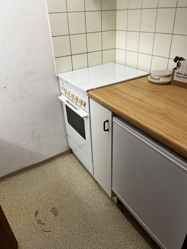 Eine Küche ist vorhanden, gehört aber nicht zum Mietvertrag – falls sie nicht zusagt, können Sie sie problemlos austauschen. Das Bad ist älter, aber funktionstüchtig. Ein Kalkfleck in der Wanne vom Vormieter lässt sich nicht mehr entfernen, ist jedoch nur ein optischer Mangel. Die Wohnung ist teilmöbliert (Badschrank). Der Boden weist zwei kleine Kratzer auf, ist ansonsten in gutem Zustand. Die Wohnung wird ungestrichen übergeben, dafür müssen Sie beim Auszug auch nicht streichen.