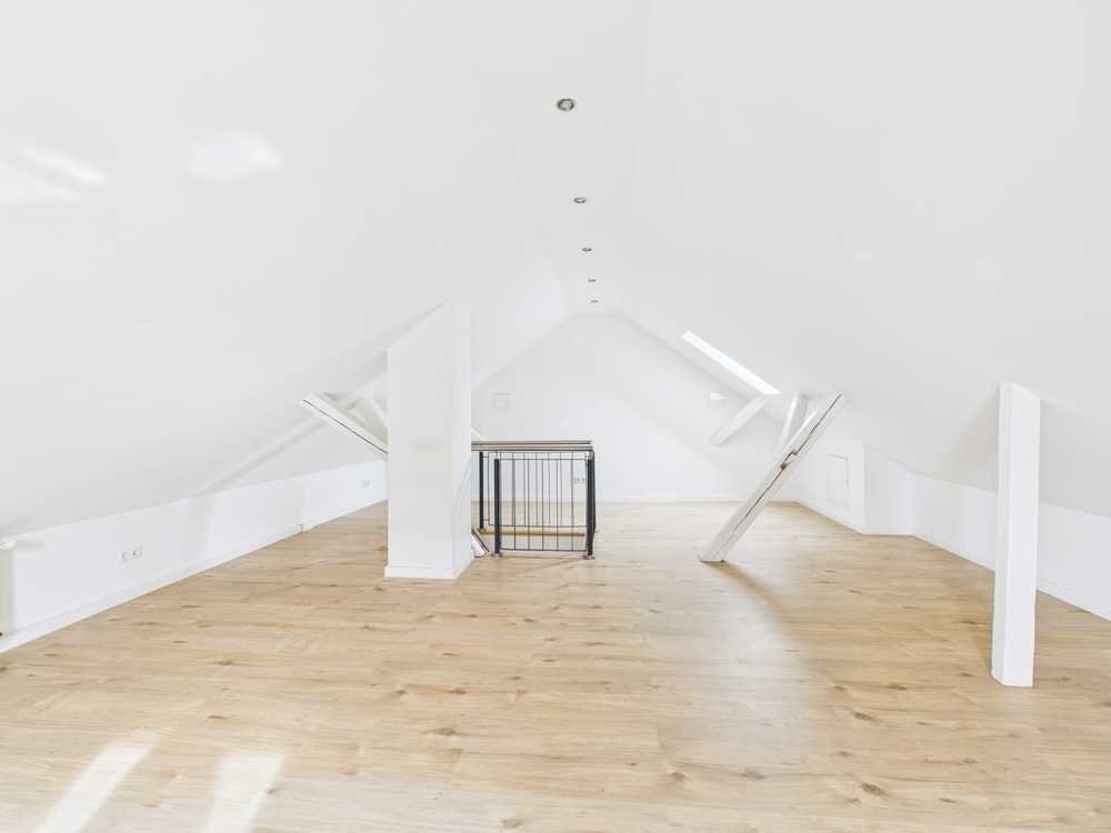 Auf der Eingangsebene können Sie sich Ihre Küche gestalten und haben zwei weitere Zimmer zur freien Verfügung. Das Badezimmer besticht mit einem Fenster und einer Badewanne. Außerdem befindet sich auf dieser Etage ein Gäste-WC. Über die innenliegende Treppe gelangen Sie in das absolute Highlight und Herzstück dieser Wohnung - das überaus geräumige Zimmer auf der zweiten Ebene, hier können Sie entweder ein stilvolles Schlafzimmer mit einer Ankleidekombination integrieren, oder sich Ihren persönlichen, gemütlichen Wohnbereich errichten. Die Dachfenster verleihen dem Raum ein besonders warmes Wohngefühl, so dass Sie sich hier direkt Zuhause fühlen werden.