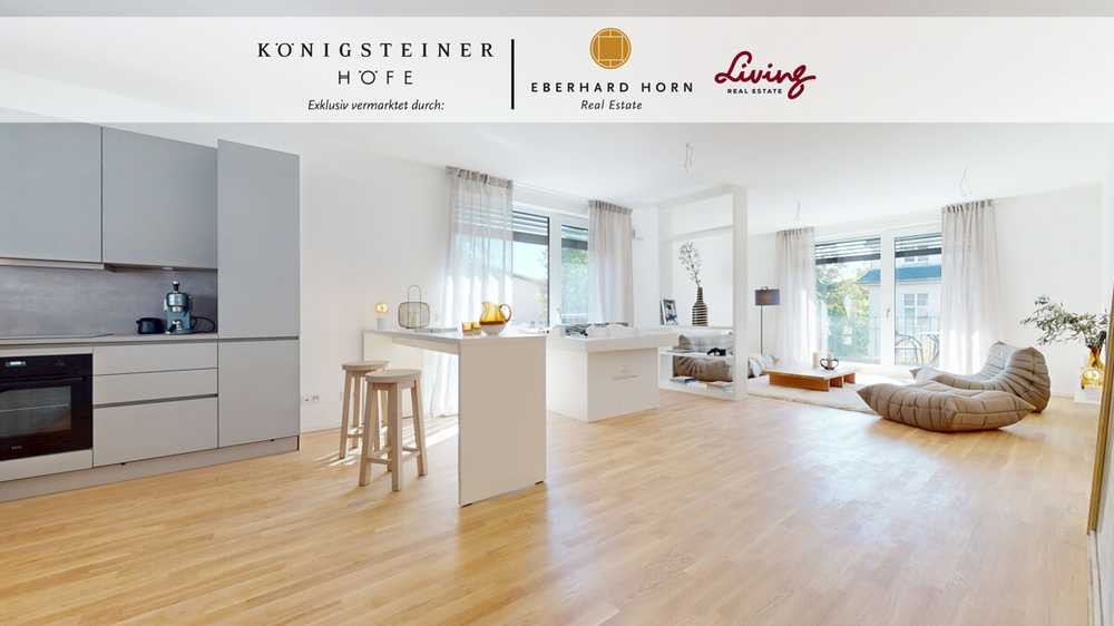 Modernes innerstädtisches Wohnen. Erstbezug der hochwertigen Wohnungen, gebaut in nachhaltiger Bauweise nach KfW55 EE. Die heterogenen Gebäude der Königsteiner Höfe sind durch einen großzügigen autofreien Innenhof verbunden, welcher sich durch eine jahreszeitlich abgestimmte Begrünung auszeichnet (mit blühenden Stauden und artenreichen Gräsern, begehbaren Grünflächen, Pflanzung von insgesamt 60 groß- und kleinkronigen Klimabäume auf dem Gelände).