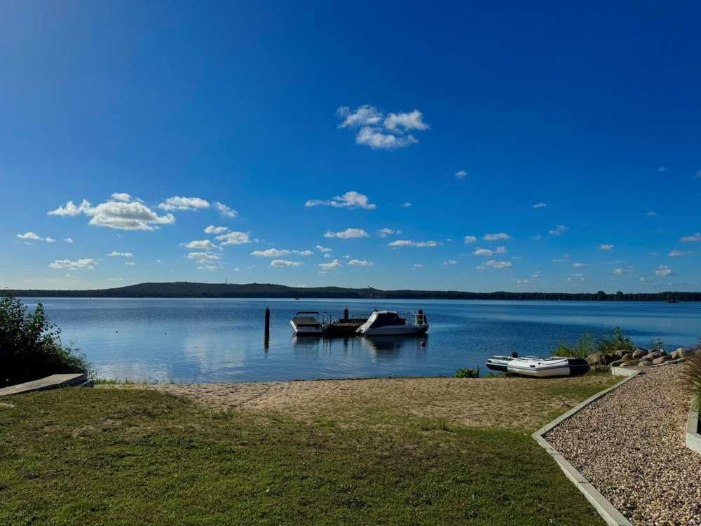 Der große Wohn- und Essbereich mit bodentiefen Fenstern bietet einen herrlichen Blick auf den Müggelsee.