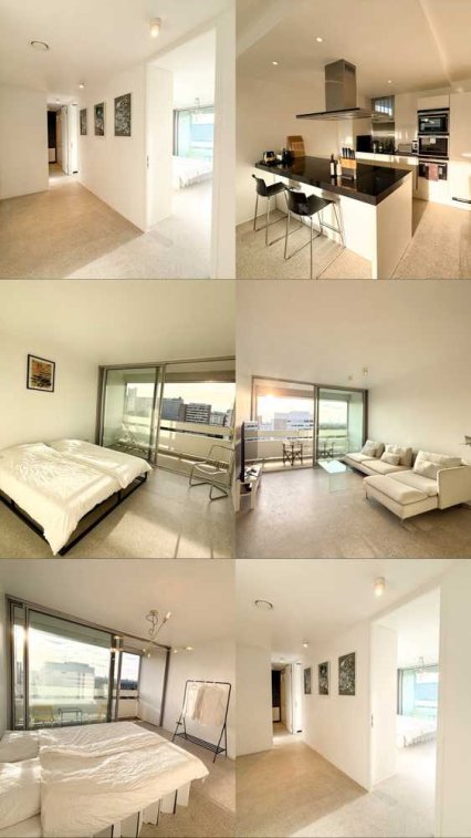 Auf rund 90 m² Wohnfläche erwartet Sie ein lichtdurchfluteter Wohn- und Essbereich mit offener Designerküche (Bestandsküche Siemens), ausgestattet mit hochwertigen Einbaugeräten (u.A. integrierte Kaffeemaschine, Induktionskochfeld, Backofen mit Dampfgar- und Mikrowellenfunktion). Zwei Schlafzimmer – eines davon flexibel auch als Arbeitszimmer nutzbar – bieten Rückzugsräume mit direktem Zugang zu eigenen Balkonen.