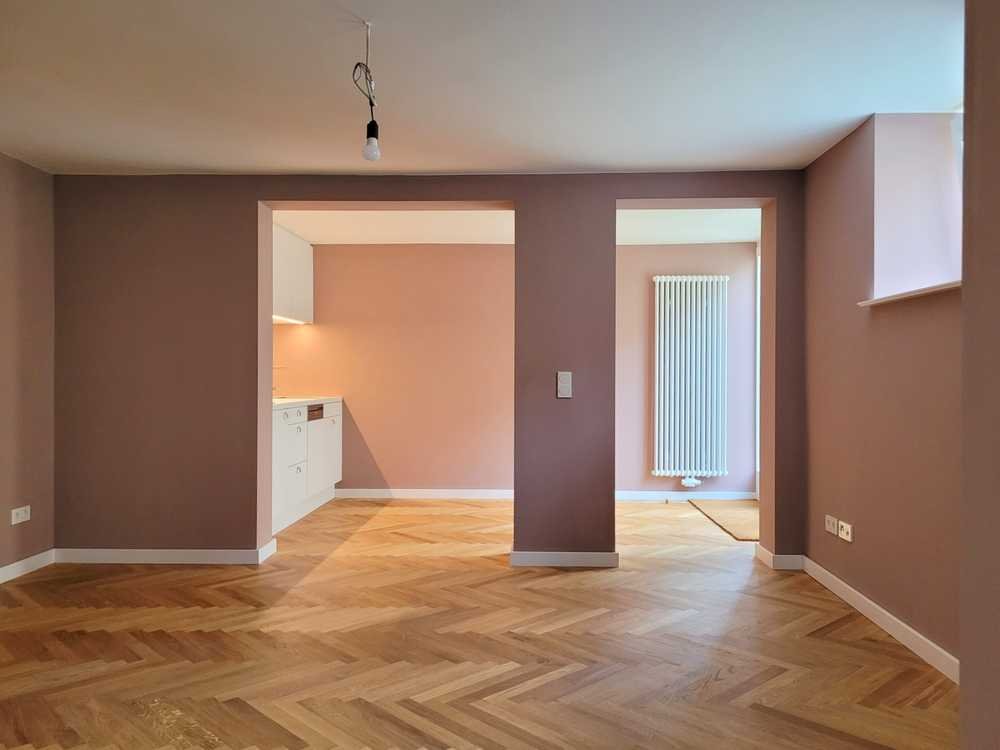 Die Wohnung besticht durch die hochwertige Einbauküche, die weißen Holzfenster, die farbig kalkverputzten Wände, das Bad und nicht zuletzt durch das Eichenholz-Parkett.