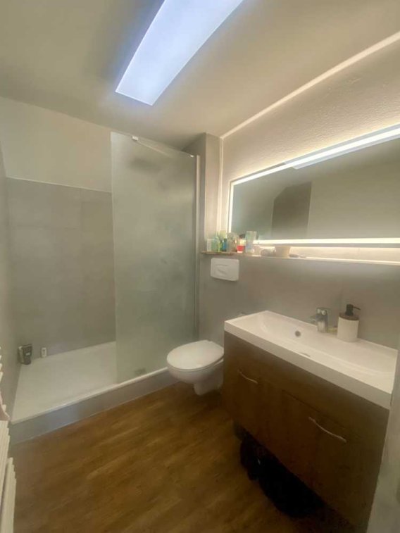 - Modernes Badezimmer mit großzügiger Dusche und modernen Fliesen