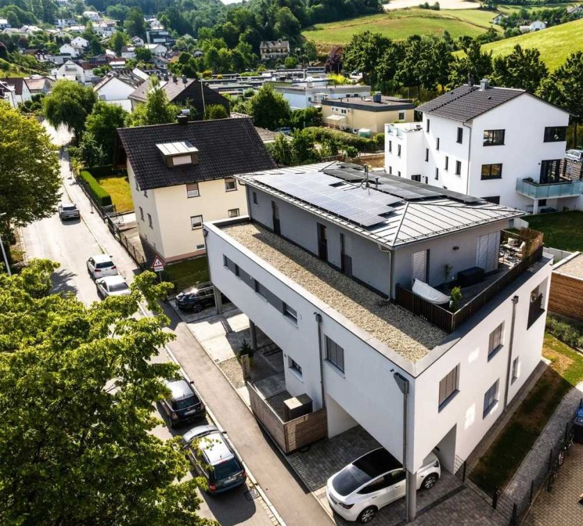 Die exklusive, 2020 fertiggestellte Wohnanlage mit nur drei Wohneinheiten im ersten und zweiten Stock und einer als Kanzlei genutzten Gewerbeeinheit im Erdgeschoss befindet sich in der Stadt-Au, einer gehobenen Wohngegend Deggendorfs in fußläufiger Entfernung zum Zentrum der Stadt. Zentral, aber trotzdem ruhig.