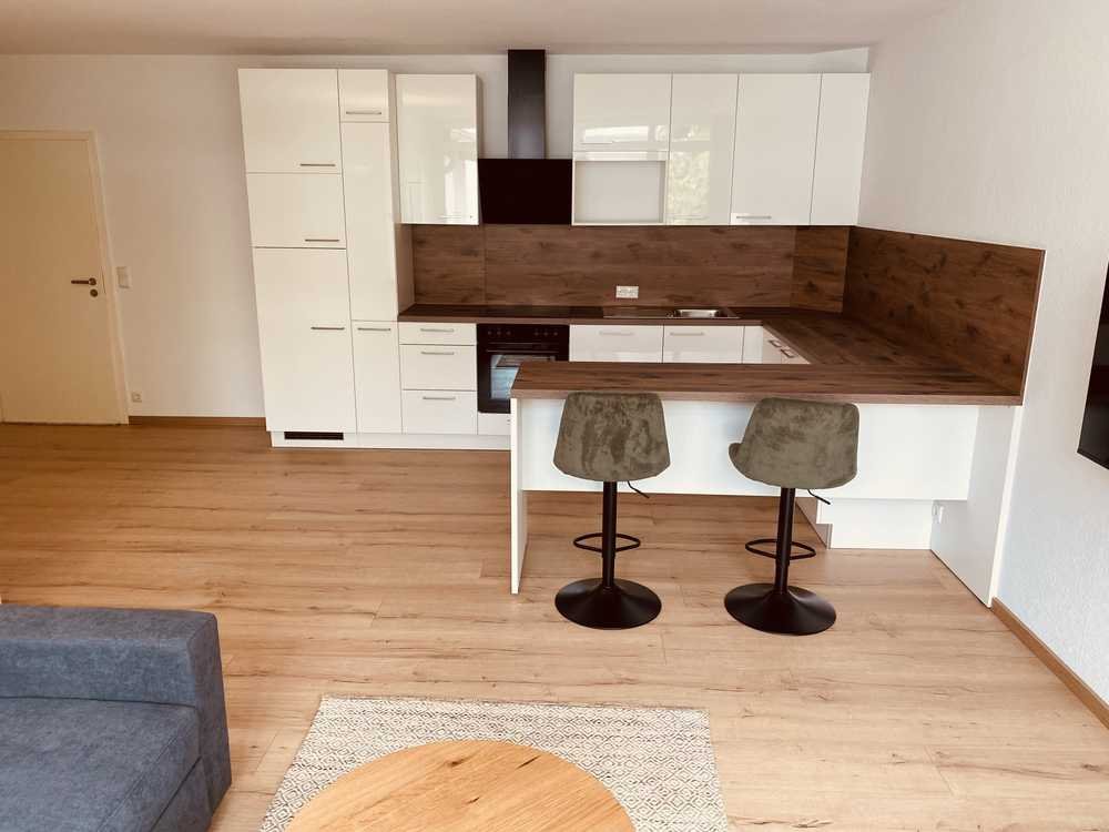 Die Wohnung besticht durch ihre moderne, komplett neue Möblierung und ihre ebenso neue Einbauküche und das frisch sanierte Bad. Zur stilvollen Ausstattung gehören unter anderem ein gemütliches Sofa mit Wohnzimmertisch, ein großes Stauraumbett, ein geräumiger Schwebetürenschrank sowie ein 55-Zoll-Flachbildfernseher. Die offene Küche mit Essgelegenheit bietet viel Stauraum und lädt zum Kochen und Verweilen ein – ideal für alle die ohne großen Aufwand einziehen möchten.