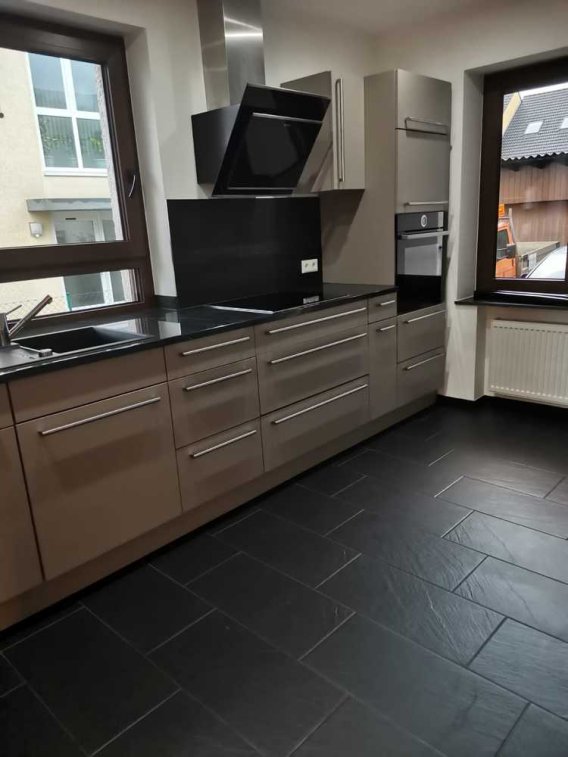 Die Einbauküche kommt mit allen gängigen Elektrogeräten (Geschirrspüler, Ofen, Herd etc) bis auf einen Kühlschrank, dabei handelt es sich um eine hochwertige Reddy Küche aus dem Jahr