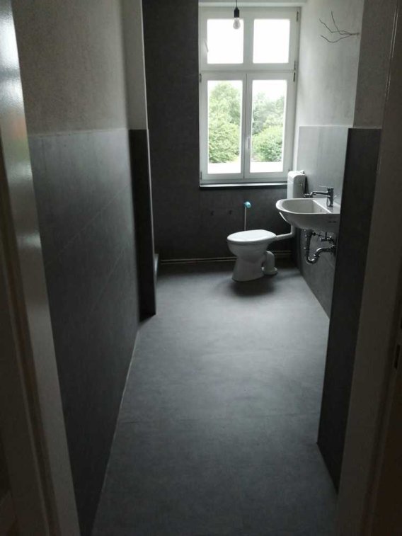 Die Wohnung ist komplett renoviert, d.h. weiß gestrichen auf Rauhfaser. Die Fussböden bestehen aus alter Dielung geschliffen und lackiert. Alle Fenster sind ISO-verglast.