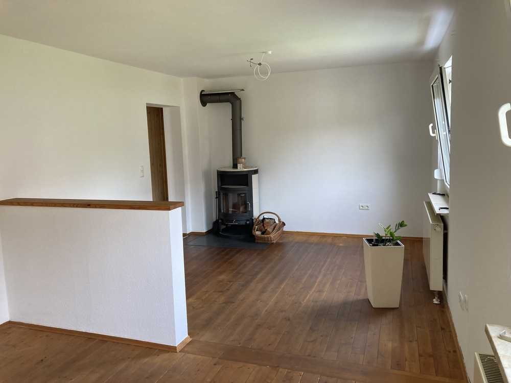 Das Bad ist mit Badewanne, Dusche und Fenster ausgestattet. Im Wohn und Essbereich befindet sich ein Schwedenofen.
