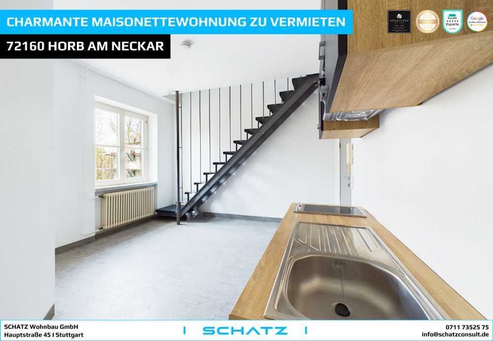 Diese Maisonettwohnung, die im ruhigen Horb am Neckar liegt, verfügt knappe 30m2 auf 2 bescheide Zimmer verteilt.