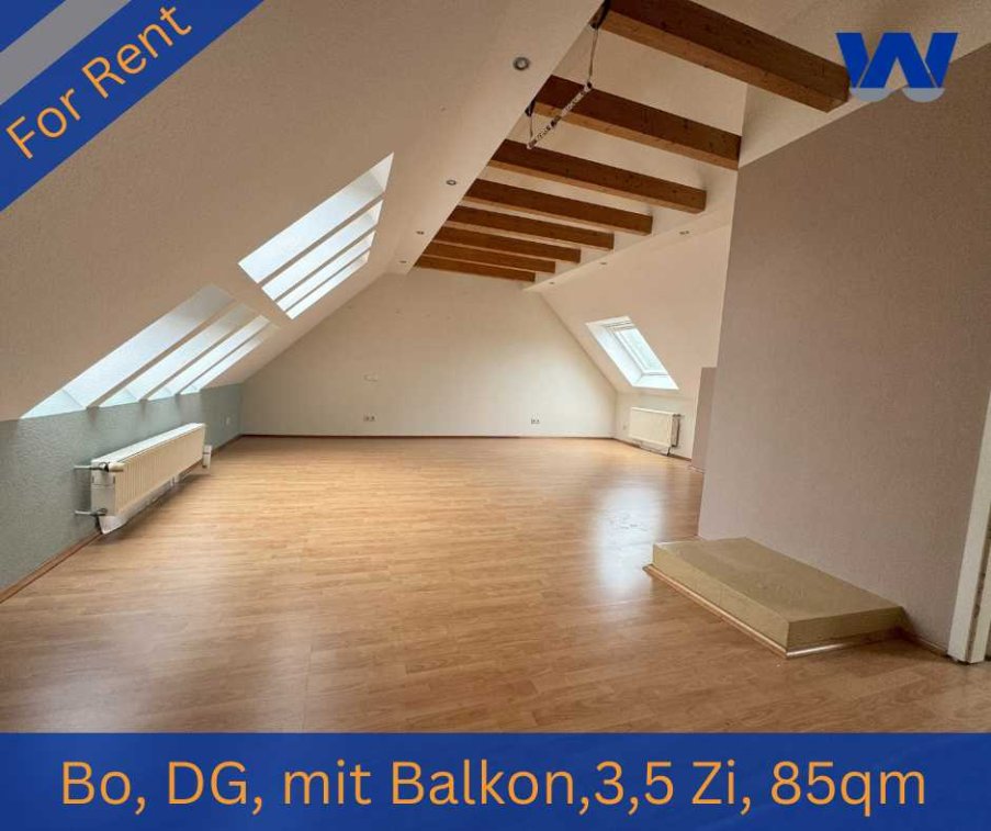 Die Wohnung befindet sich in einem gepflegten Mehrfamilienhaus in Bochum Altenbochum. Die Wohnung liegt im DG links und ist 85 qm groß. Die Wohnung verteilt sich auf zwei Etagen die mittels interner Treppe verbunden sind. In der unteren Etage befinden sich Flur, Küche, Arbeitszimmer, Bad und Wohnzimmer mit Zugang zum Balkon. In der oberen Etage befindet sich das große Schlafzimmer mit Ankleideraum.