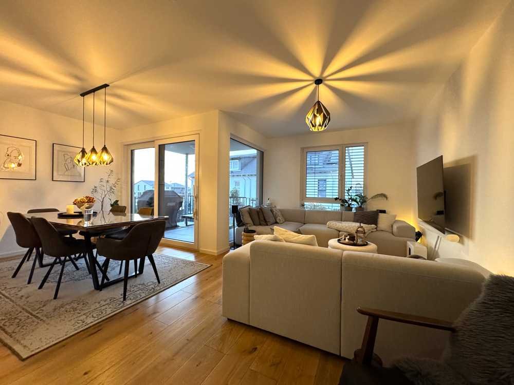 Die Wohnung erstreckt sich über das 1. Obergeschoss und das Dachgeschoss und bietet mit dreieinhalb hellen Zimmern, einem modernen Tageslichtbad sowie einem separaten Gäste-WC hohen Wohnkomfort auf zwei Ebenen. Das Highlight bildet das geräumige Wohnzimmer mit Essecke und Zugang zum Balkon, auf dem man wunderbar vom Alltag abschalten kann.
