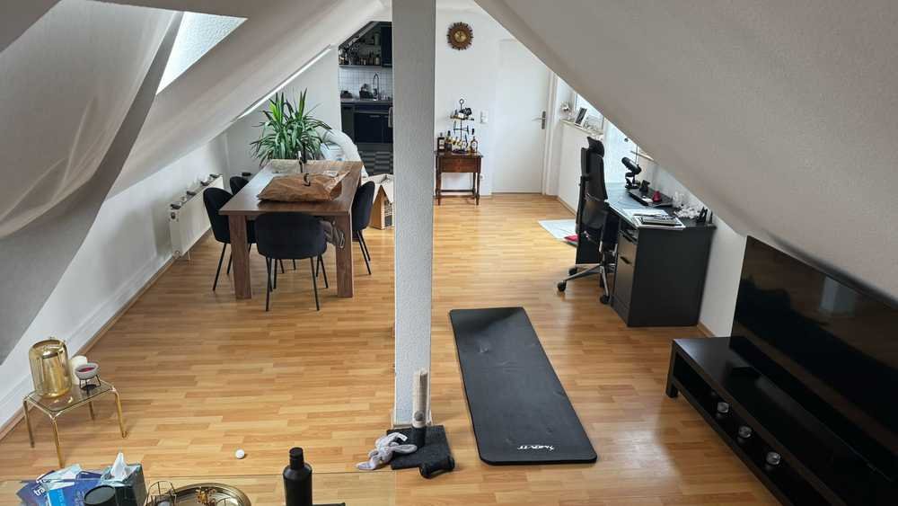 Die Räume sind gepflegt, freundlich und sofort bezugsfertig. Der Fliesenboden in Flur, Bad und Küche ist pflegeleicht und einheitlich. Die Dachschrägen sorgen für ein gemütliches Wohngefühl mit besonderem Charakter.