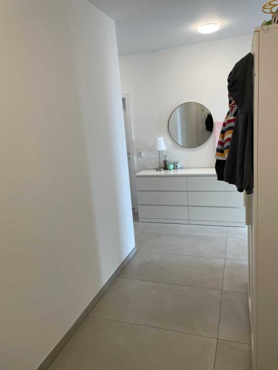 Der Wohnungsflur ist breit und offen geplant worden, so dass auch Mieter mit Einschränkungen in der Mobilität ohne Probleme in der Wohnung zurecht kommen.